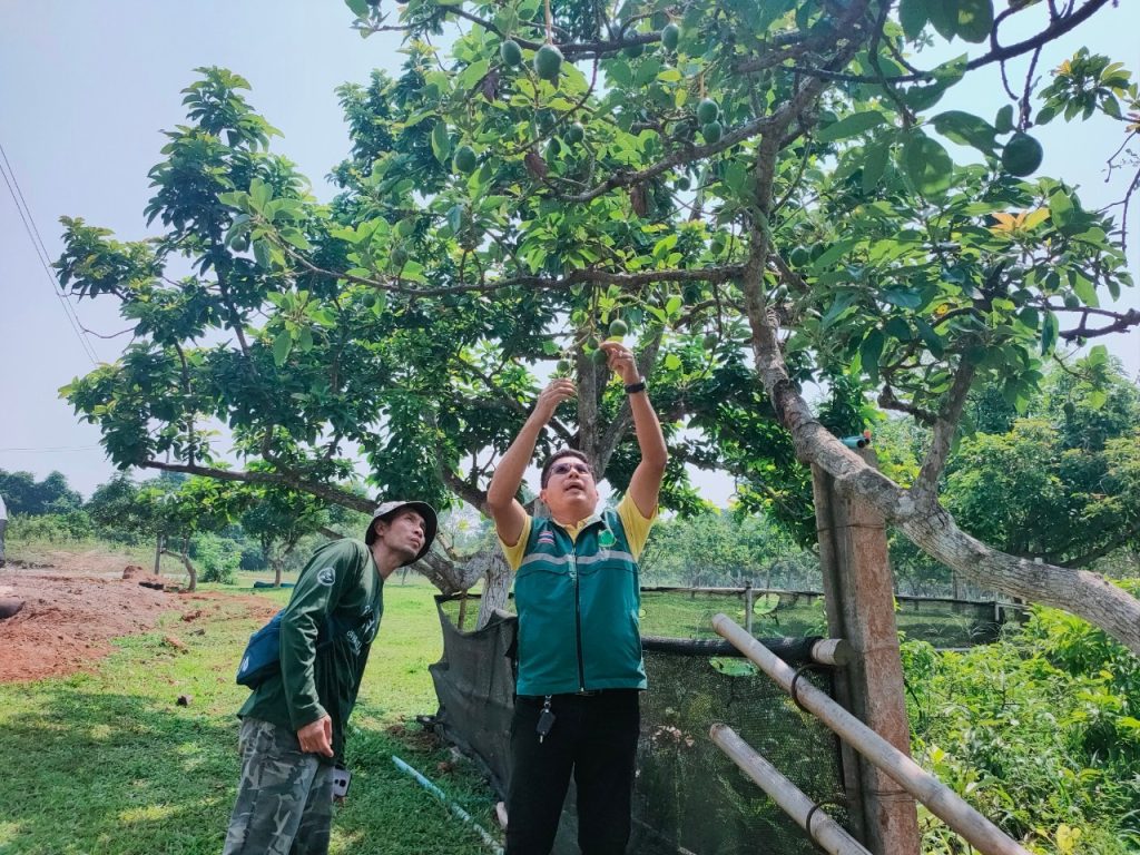 จากนั้นได้นำ คุณสุดใจ และครอบครัว เยี่ยมชมแปลงเรียนรู้การปลูกอะโวคาโดภายในศูนย์ฯ เพื่อแลกเปลี่ยนความรู้ด้านการจัดวางผังแปลงก่อนการปลูก การดูแลรักษา การใส่ปุ๋ย การกำจัดวัชพืช การปลูกพืชโดยดูทิศทางของแสงเพื่อให้พืชได้รับแสงที่เหมาะสมต่อการเจริญเติบโต การขยายพันธุ์ด้วยเทคนิคต่างๆ เช่น การเพาะเมล็ด การฝานบวบ การเสียบลิ่ม การเสียบเปลือกข้าง การเสริมราก เป็นต้น ตลอดจนการสร้างการรับรู้ และความเข้าใจในการเก็บเกี่ยวเพื่อให้ได้ผลผลิตที่มีคุณภาพ