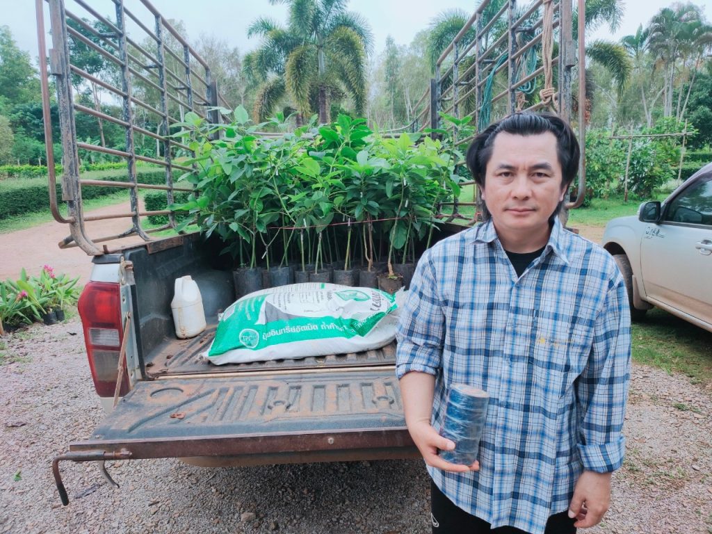 โดยได้สนับสนุนกล้าหญ้าแฝก และปัจจัยการผลิตที่จำเป็นและเหมาะสมกับทรัพยากรในพื้นที่ มีการใช้เทคโนโลยี นวัตกรรมการเกษตรเพื่อเพิ่มผลิตภาพการเกษตร ให้แก่ นายกมล เล่าชินคุปต์ ในกิจกรรมส่งเสริมการปลูกไม้ผลไม้ยืนต้นร่วมกับหญ้าแฝก