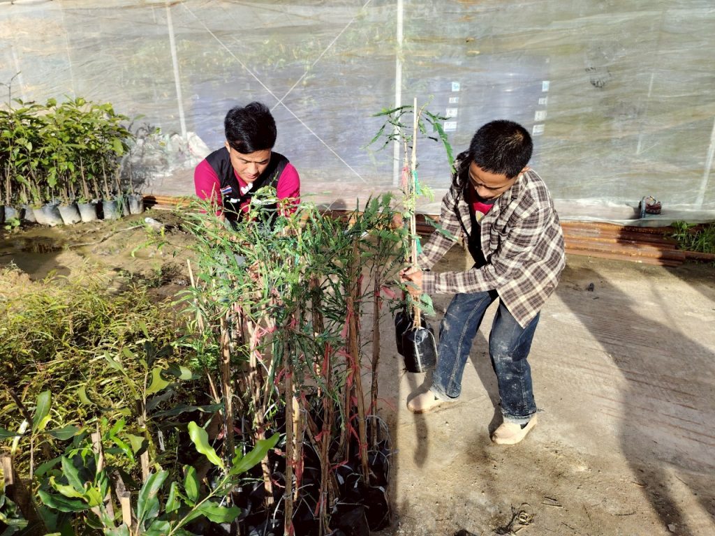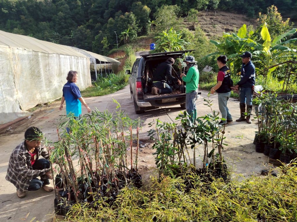 มอบปัจจัยการผลิต ต้นกล้ามะคาเดเมีย ต้นกล้ามะขามป้อมยักษ์ ต้นกล้ามะม่วง ให้แก่